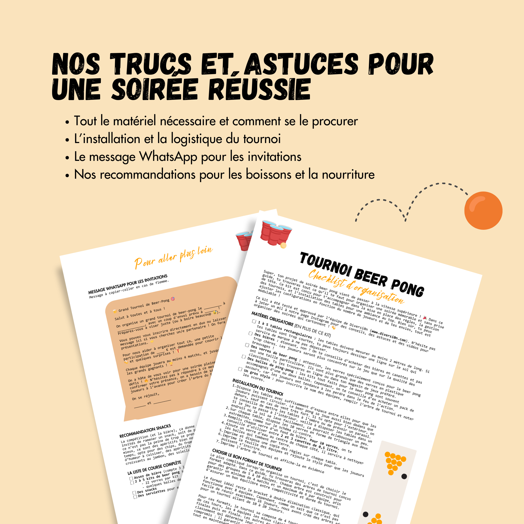 Tu cherches à organiser un tournoi de beer pong chez toi sans passer des heures à réfléchir au format ? Chez DiversiOn, on est de vrais passionnés de jeux de table, de tournois endiablés et de soirées festives. On a justement organisé un super tournoi de beer pong l’année dernière, et on a condensé toute notre expérience dans ce kit prêt à l’emploi !