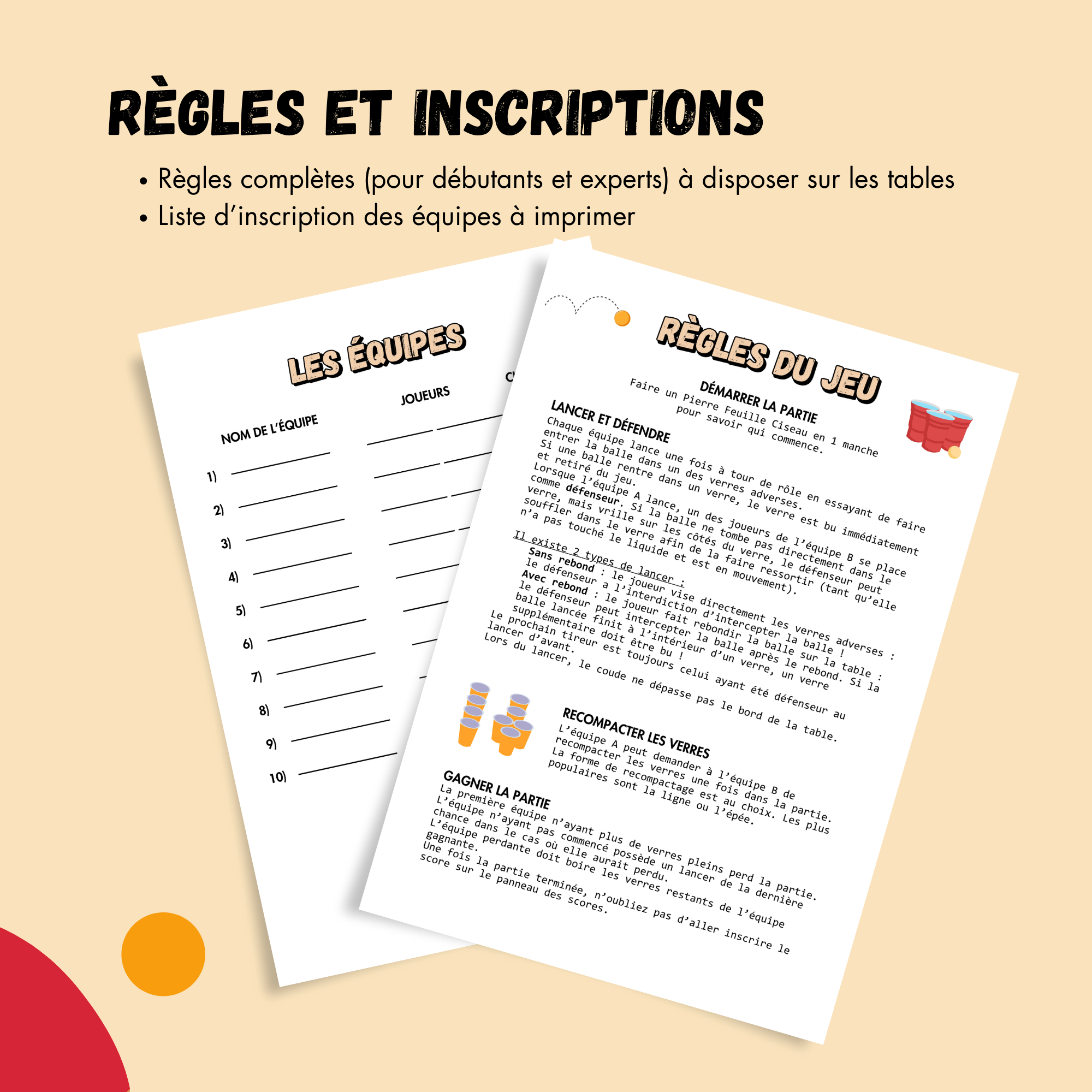 Kit Compétition Beer Pong, règles, inscription et bracket de Tournoi à imprimer